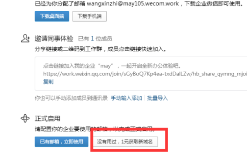 利用企业微信领取com域名一年