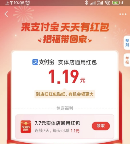 首页 > 活动线报 > 支付宝天天领实体店通用现金红包 2025最新