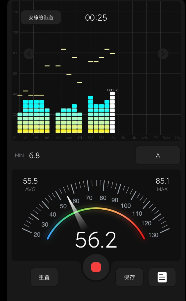 1、强大的噪音检测功能,你可以轻松检测附近的噪音分贝;